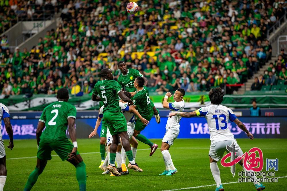 本場比賽由于外援阿德本羅訓練中受傷,使得北京國安隊對首發(fā)陣容做出微調(diào),在中后場保持穩(wěn)定的前提下,鋒線安排曹永競、法比奧和張玉寧3人首發(fā)。上半場,北京國安隊在場面占優(yōu)的情況下,第19分鐘被對手利用反擊的機會打入一球?qū)⒈确指膶懗?比1。隨后北京國安隊進行人員調(diào)整,用邊路快馬方昊換下了邊后衛(wèi)何宇鵬。怎奈運氣不佳,又被對手在上半場結(jié)束前打入一球,半場結(jié)束時北京國安隊0比2暫時落后。