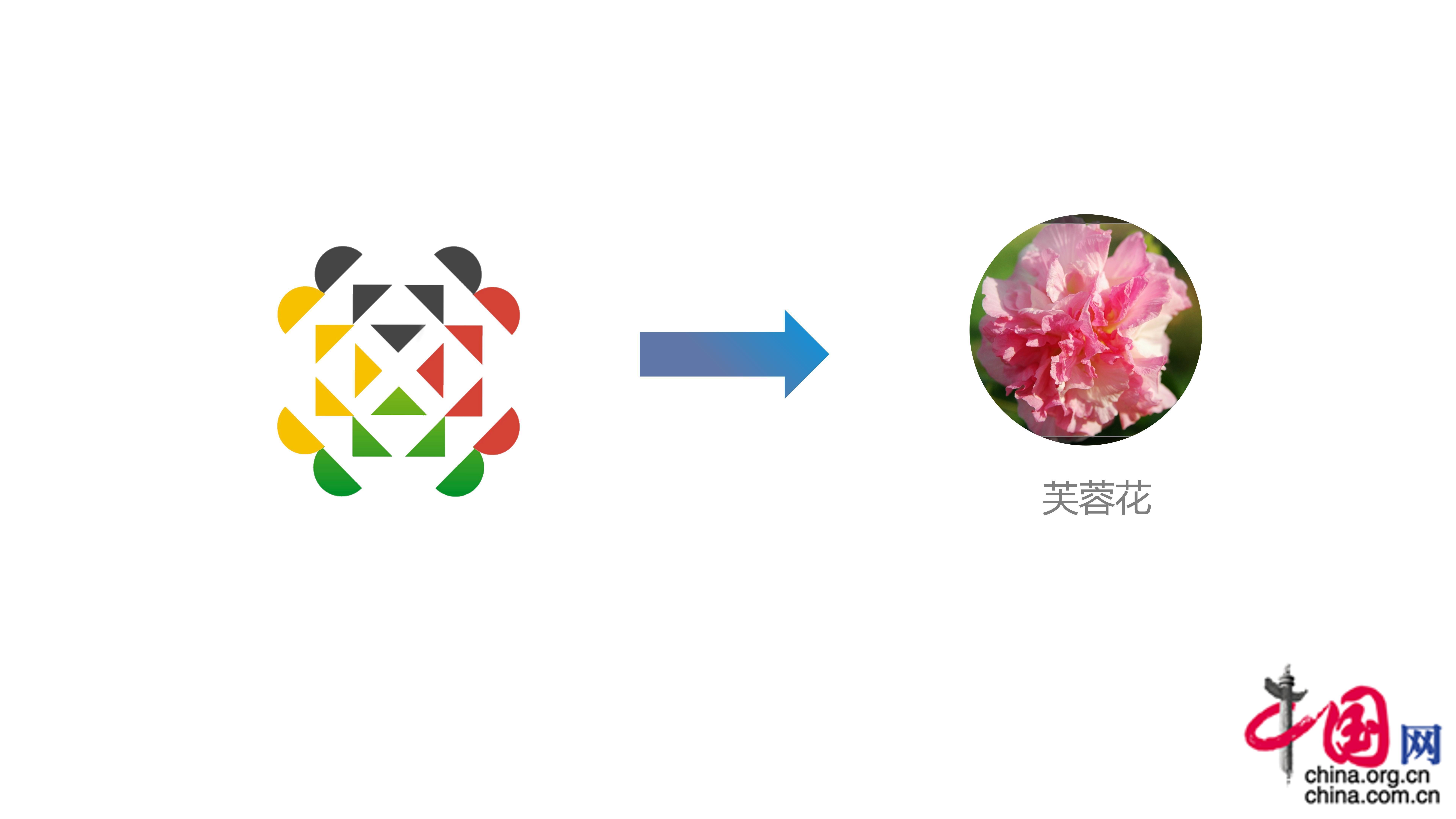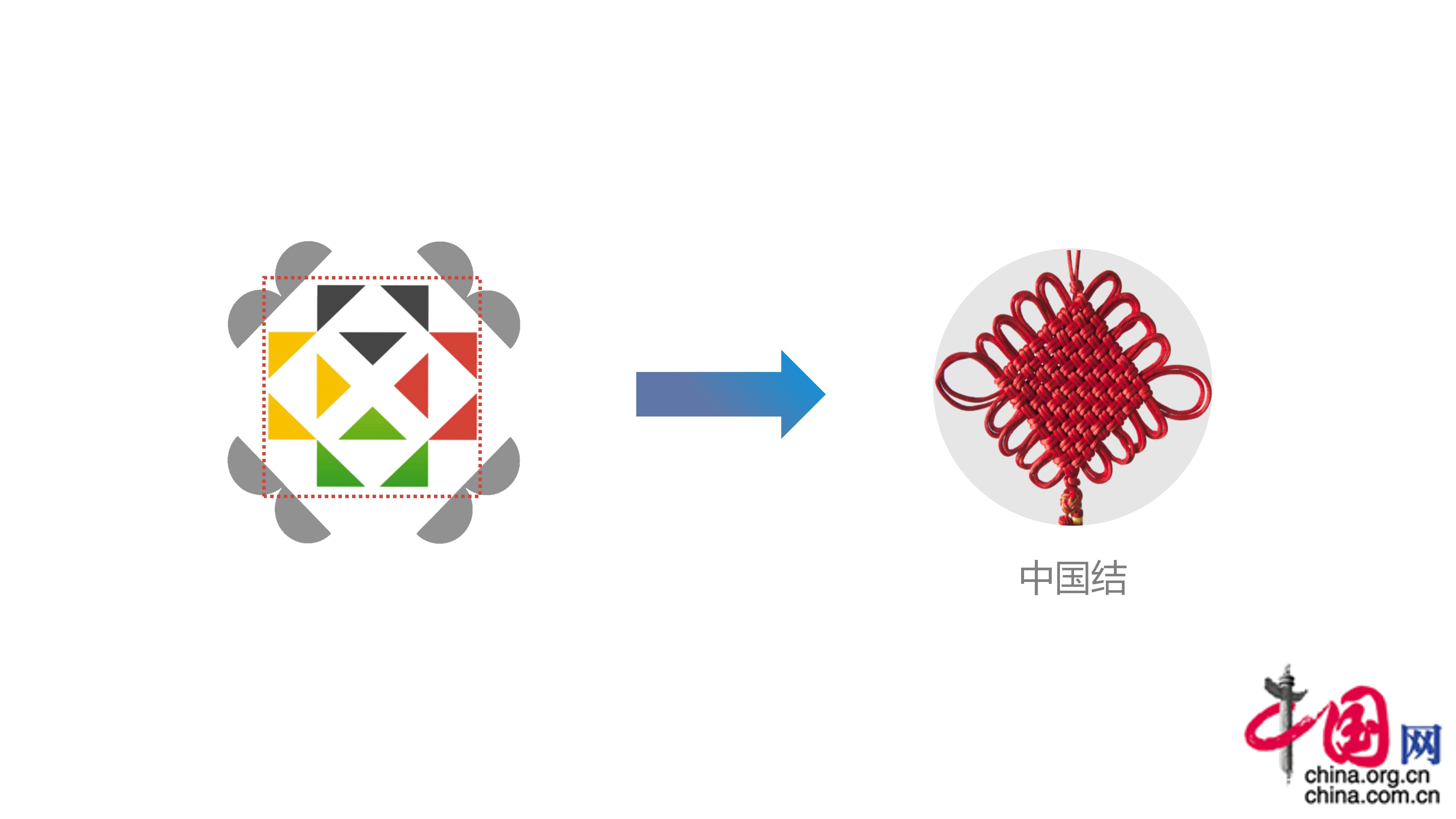 “會(huì)徽的構(gòu)圖參考了中國(guó)結(jié)的形狀,這種古老的手工編織工藝品簡(jiǎn)潔而優(yōu)美,象征著團(tuán)結(jié)、繁榮和幸運(yùn),它能變化出多種形態(tài),仿佛繩結(jié)編成的魔方,非常令我著迷。”費(fèi)爾利說(shuō),“圖案中的半圓模擬大熊貓的耳朵,同時(shí)也可視為幾何形態(tài)的芙蓉花瓣。會(huì)徽上下左右四個(gè)對(duì)稱部分中,每一個(gè)都‘藏’著大熊貓的面部特征。”