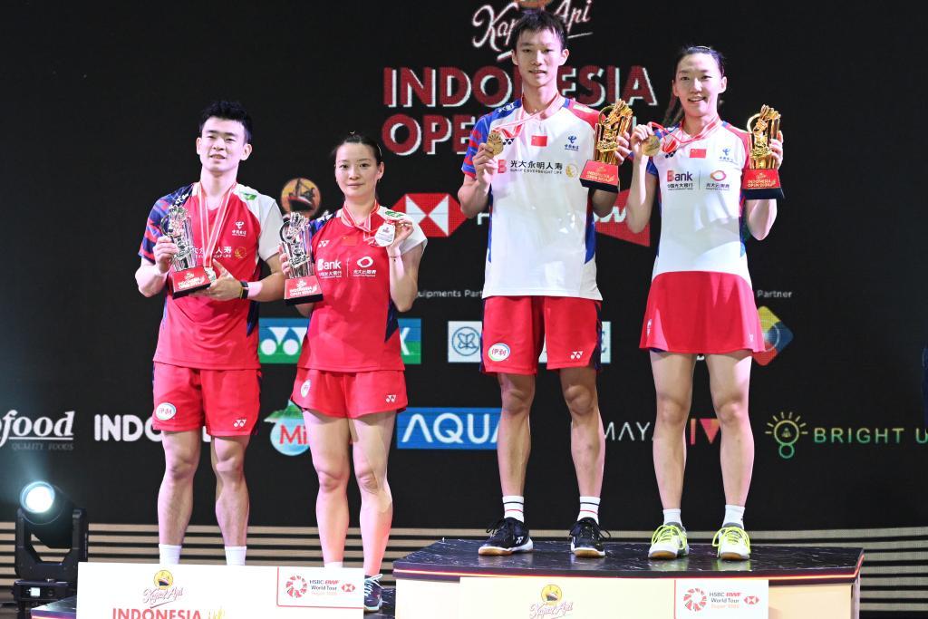 新華社雅加達(dá)6月9日電(記者陶方偉、葉平凡)2024年印度尼西亞羽毛球公開賽9日在雅加達(dá)結(jié)束各單項(xiàng)決賽,中國隊(duì)奪得女單、男單、混雙、男雙共四項(xiàng)冠軍。