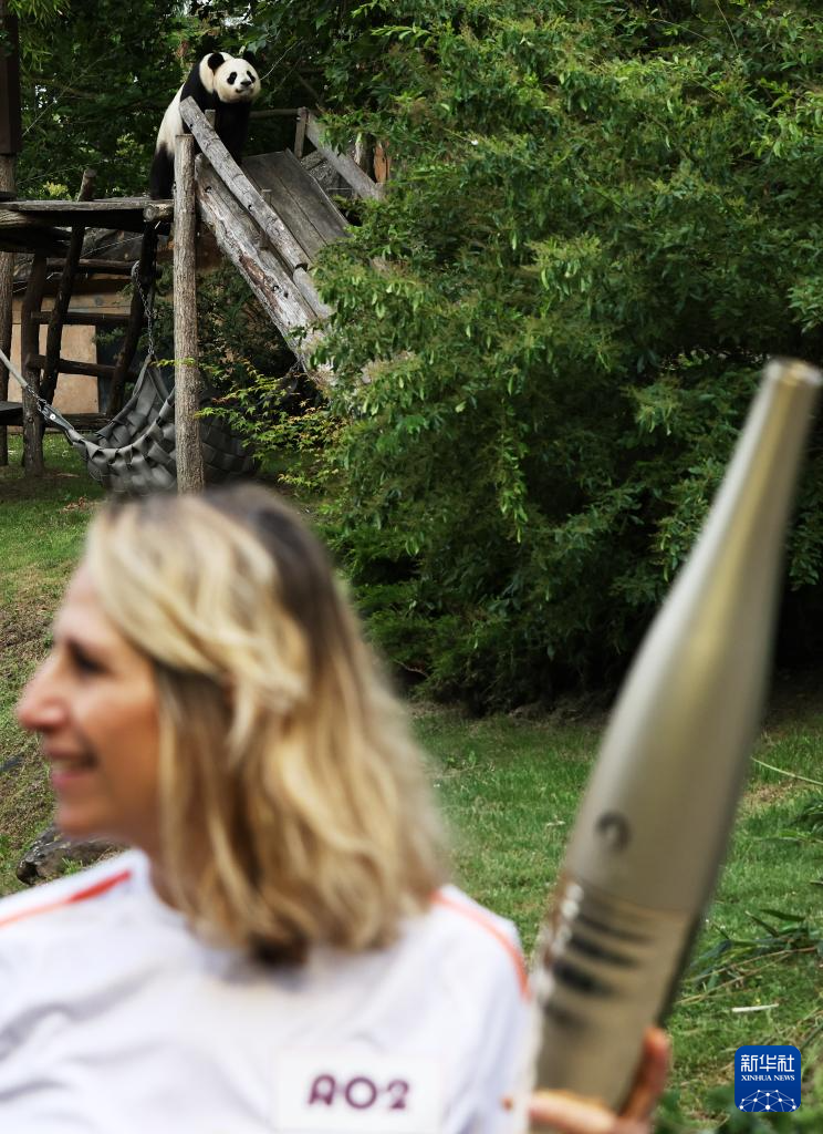 當(dāng)日,巴黎2024奧運(yùn)圣火來到位于法國中部城市圣艾尼昂的博瓦勒野生動(dòng)物園進(jìn)行傳遞,旅法大熊貓“圓仔”、“歡黎黎”、“圓嘟嘟”見證了這一歷史時(shí)刻。