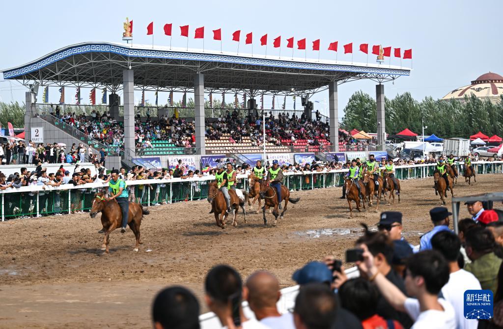 7月17日,選手在烏蘭毛都蘇木民族體育綜合訓(xùn)練基地舉行的賽馬比賽中。