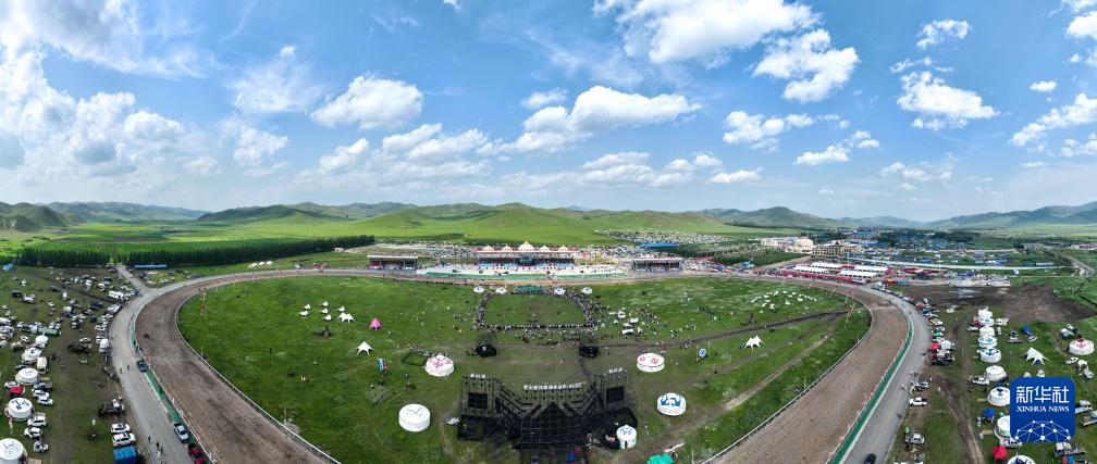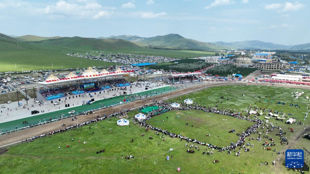 這是7月17日在烏蘭毛都蘇木民族體育綜合訓(xùn)練基地拍攝的活動現(xiàn)場(無人機(jī)照片)。