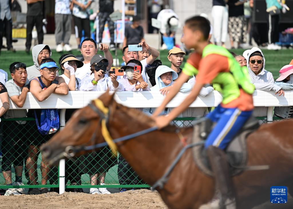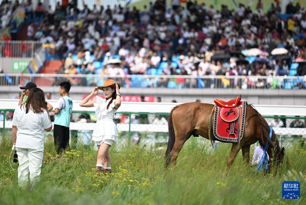 7月17日,游客在烏蘭毛都蘇木民族體育綜合訓(xùn)練基地觀看賽馬比賽。