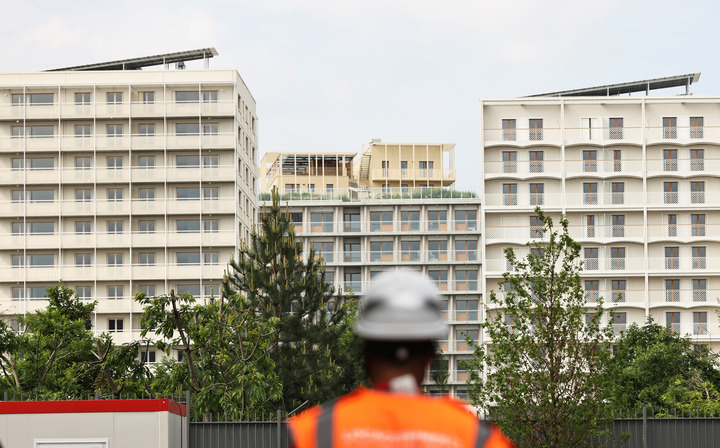 這是6月4日拍攝的巴黎奧運村和殘奧村建筑。建筑屋頂上裝有太陽能電池板。新華社記者 高靜 攝