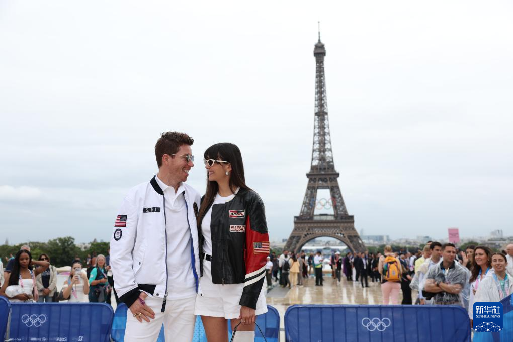 7月26日,單板滑雪名將肖恩·懷特(左)在開幕式開始前。新華社記者 李穎 攝