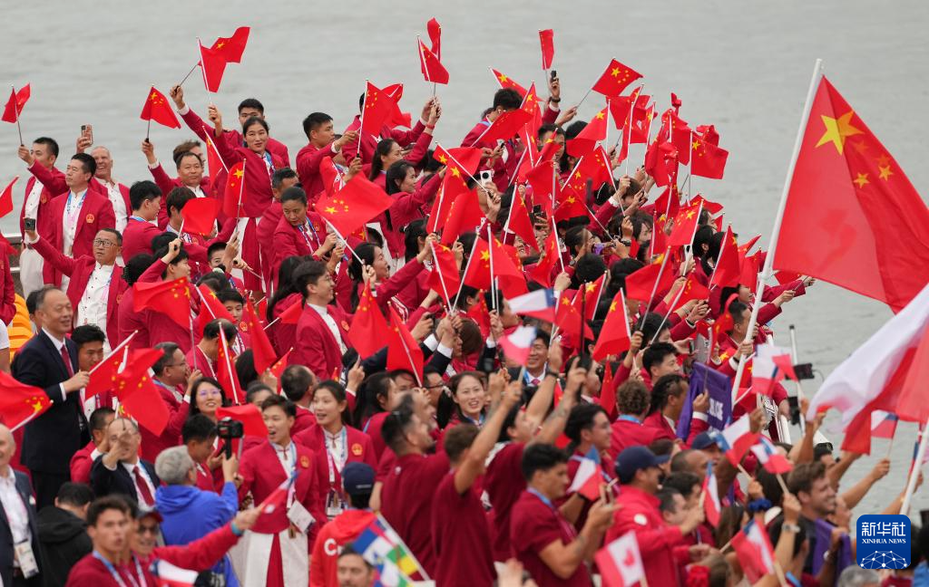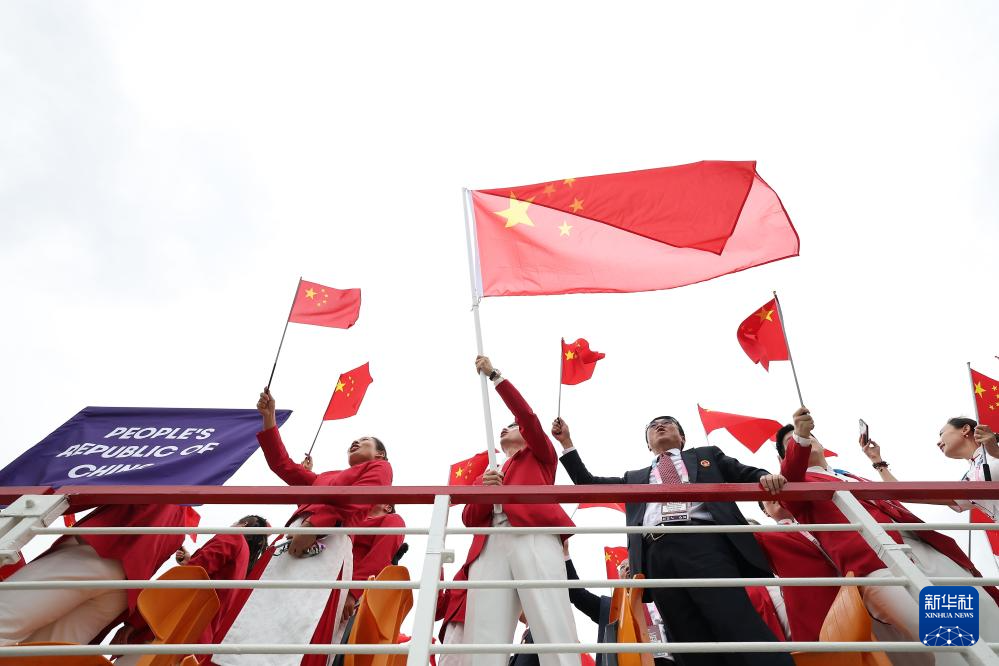 7月26日,中國體育代表團在開幕式上。新華社記者 萬象 攝