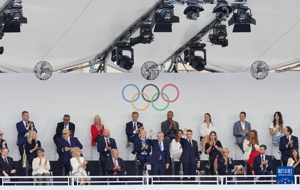 7月26日,國際奧委會主席巴赫(前排左五)和法國總統馬克龍(前排右四)出席開幕式。新華社記者 沈伯韓 攝