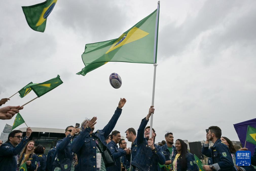 7月26日,巴西體育代表團在開幕式上。新華社發(fā)(POOL照片/卡爾·德索薩)