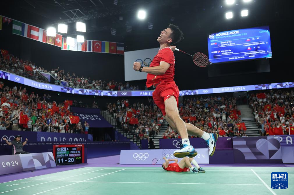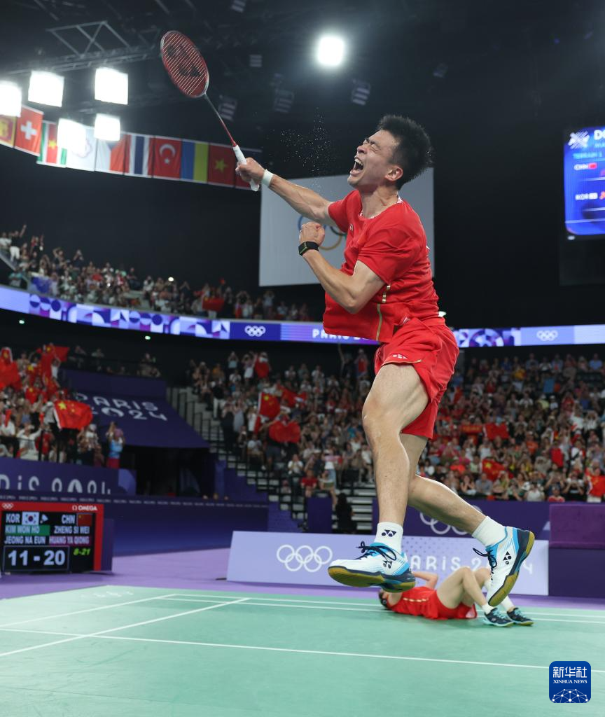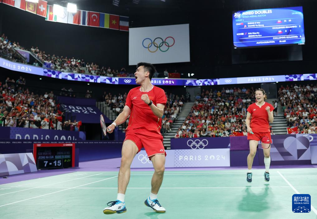 當(dāng)日,在巴黎奧運(yùn)會(huì)羽毛球混合雙打決賽中,中國(guó)組合鄭思維/黃雅瓊2比0戰(zhàn)勝韓國(guó)組合金元昊/鄭娜銀,奪得金牌。