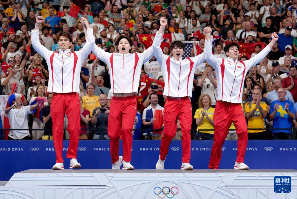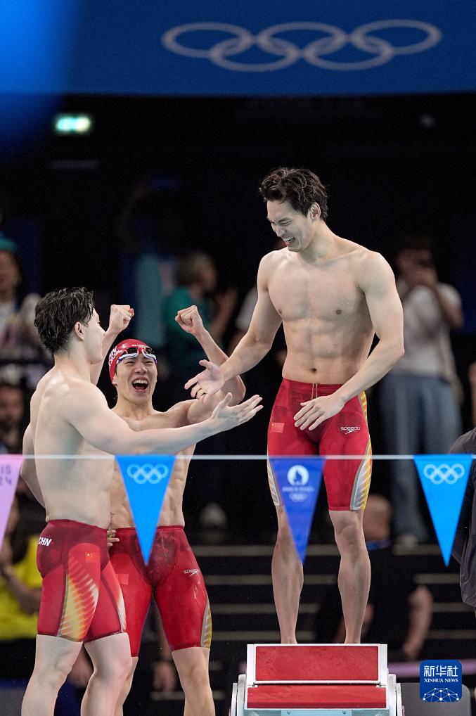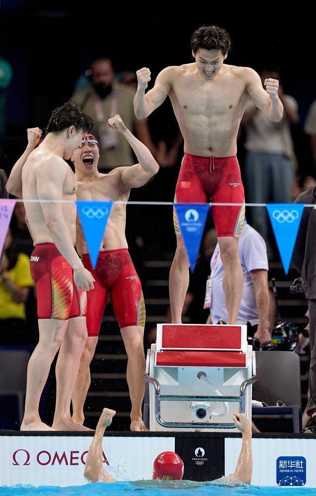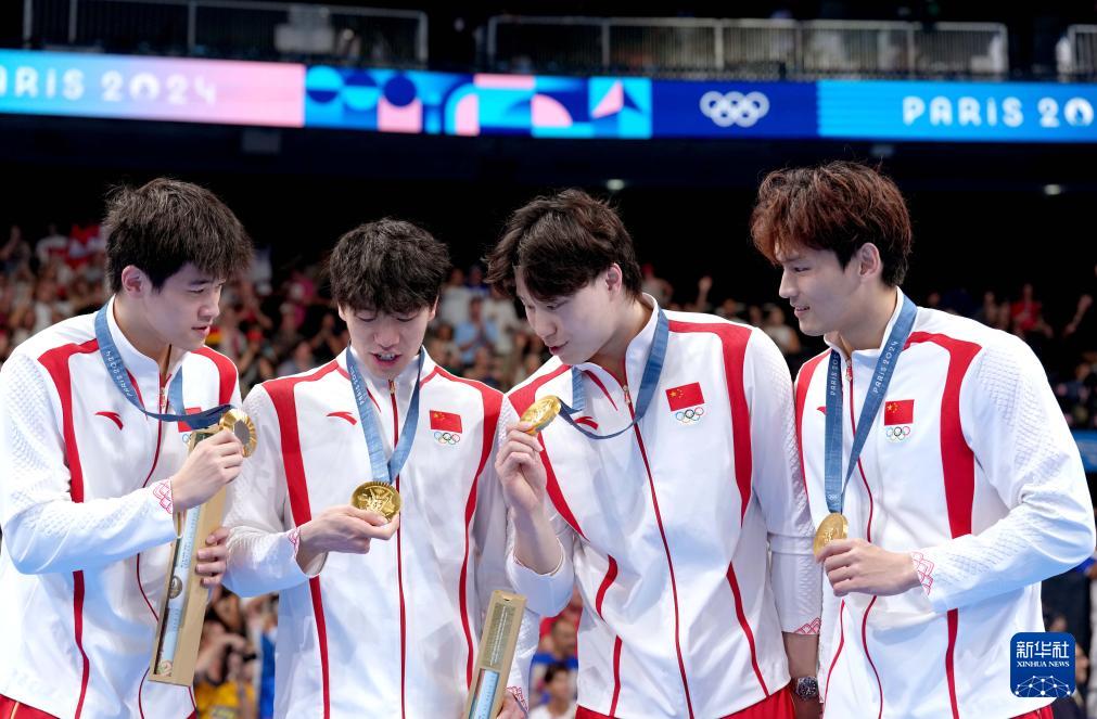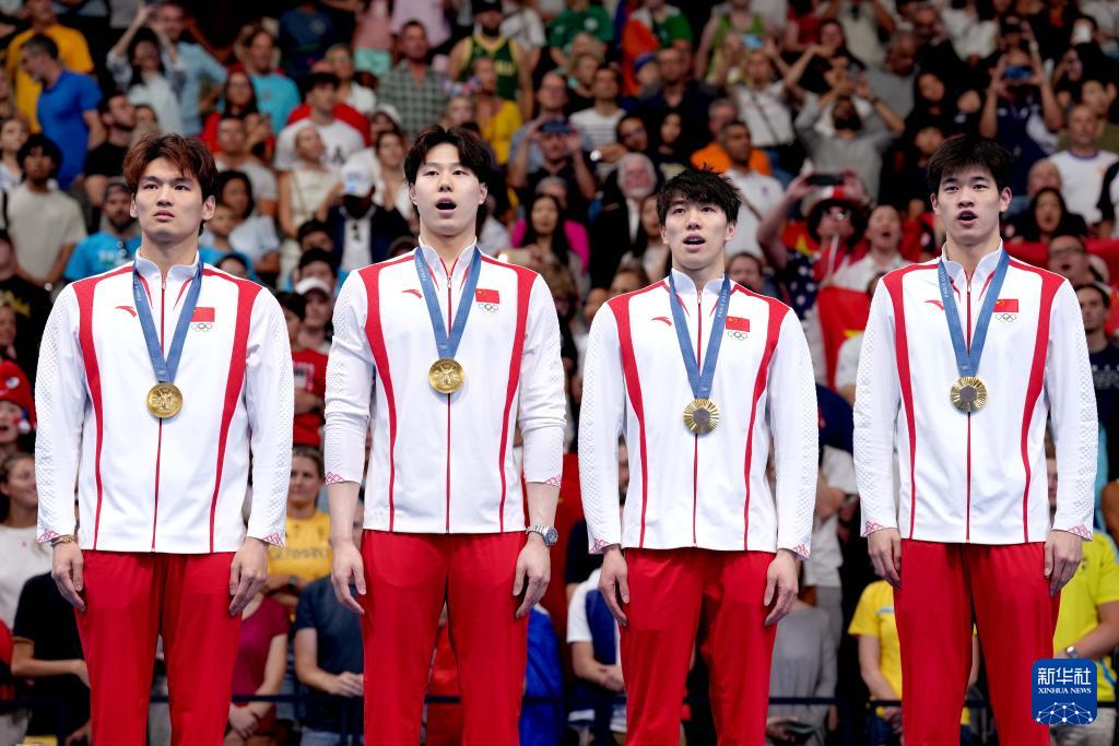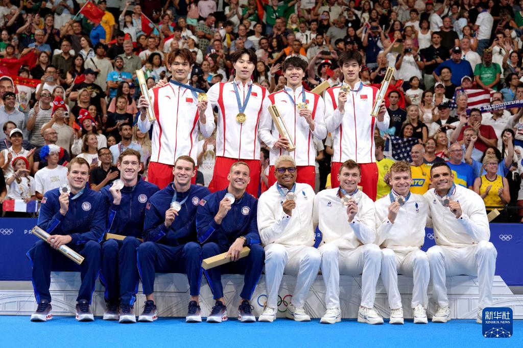 當日,在巴黎奧運會游泳項目男子4x100米混合泳接力決賽中,中國隊以3分27秒46的成績奪得金牌。