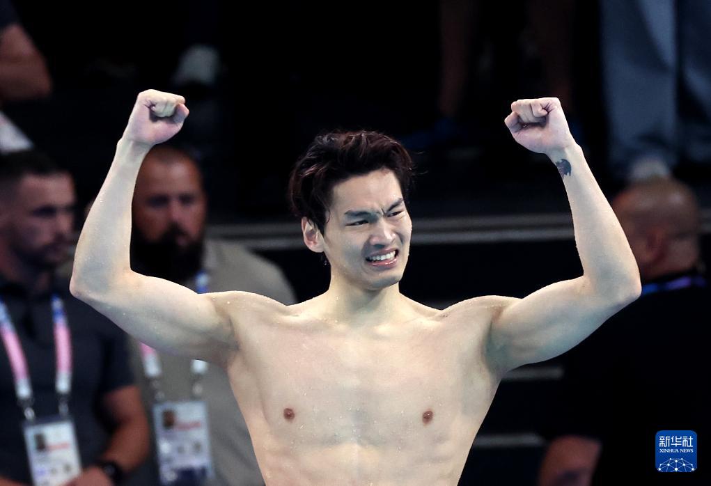 8月4日,中國隊選手潘展樂在比賽后慶祝。