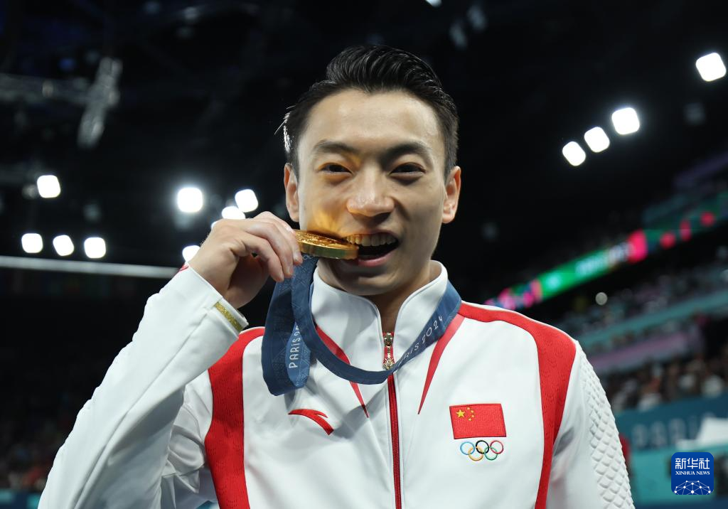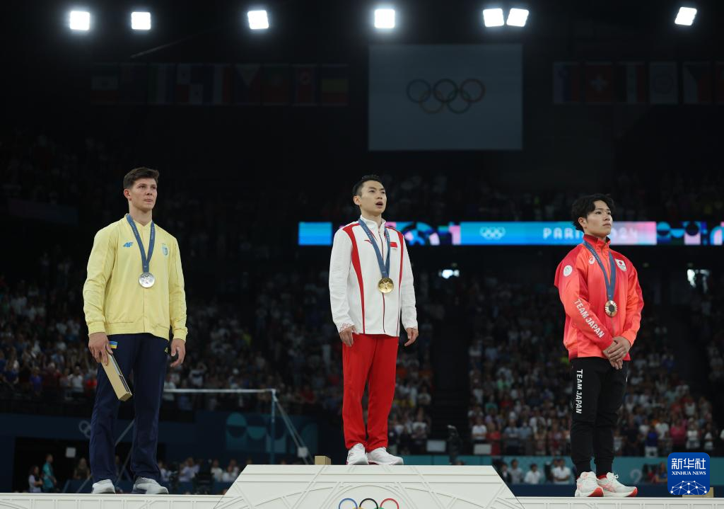 當(dāng)日,在巴黎奧運(yùn)會(huì)體操男子雙杠決賽中,中國(guó)選手鄒敬園獲得冠軍。