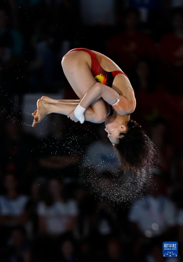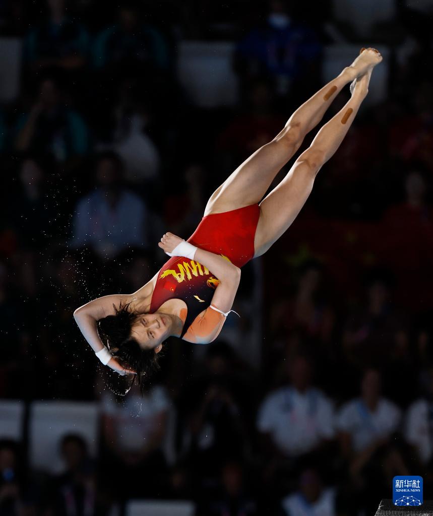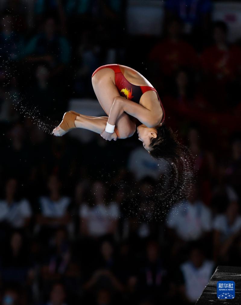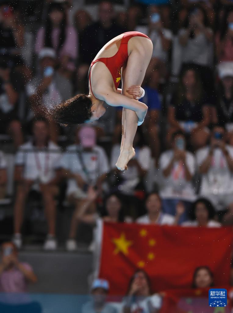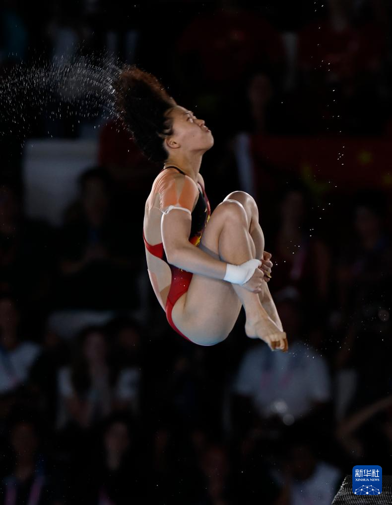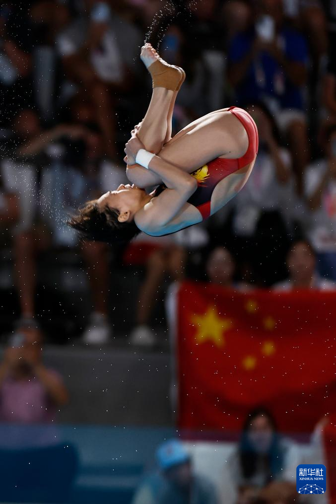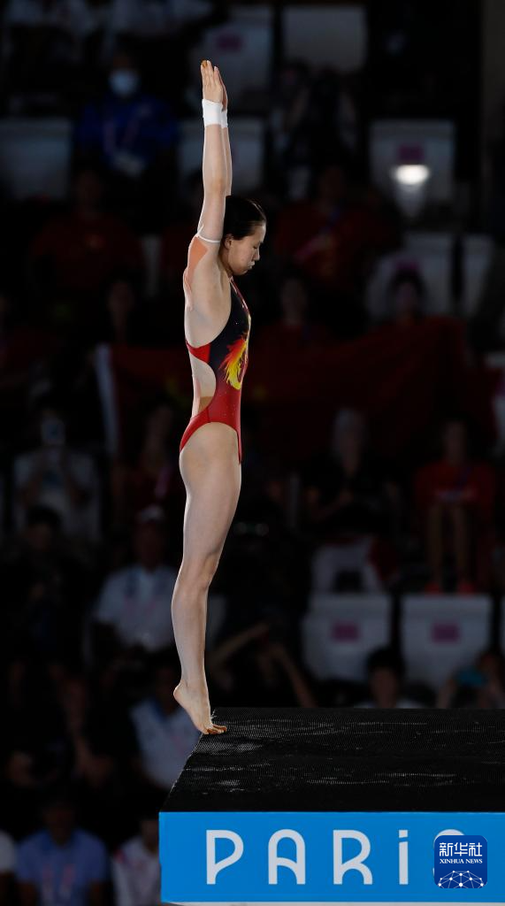 8月6日,中國選手全紅嬋在比賽中。新華社記者 張玉薇 攝