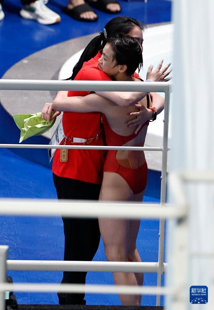 8月6日,中國選手全紅嬋(右)在比賽后。新華社記者 張玉薇 攝