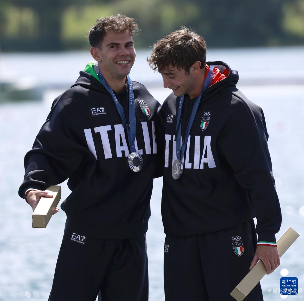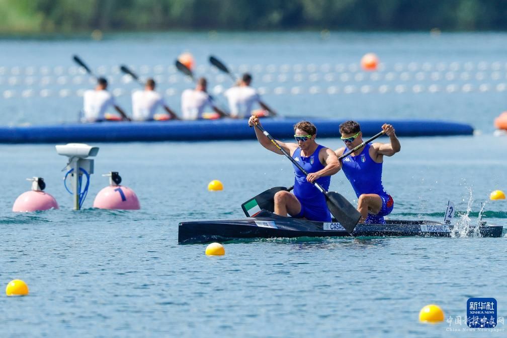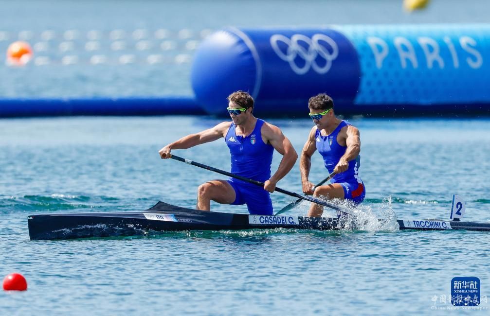 8月8日,意大利選手卡薩代伊(左)、塔基尼在比賽中。最終,他們獲得亞軍。新華社記者 沈伯韓 攝