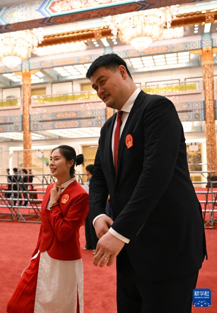 8月20日,中國籃球協(xié)會主席姚明(右)和女籃隊員王思雨在總結大會前交流。