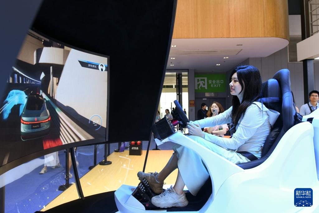 8月30日,參觀者在第二十七屆成都國際汽車展覽會體驗模擬駕駛。