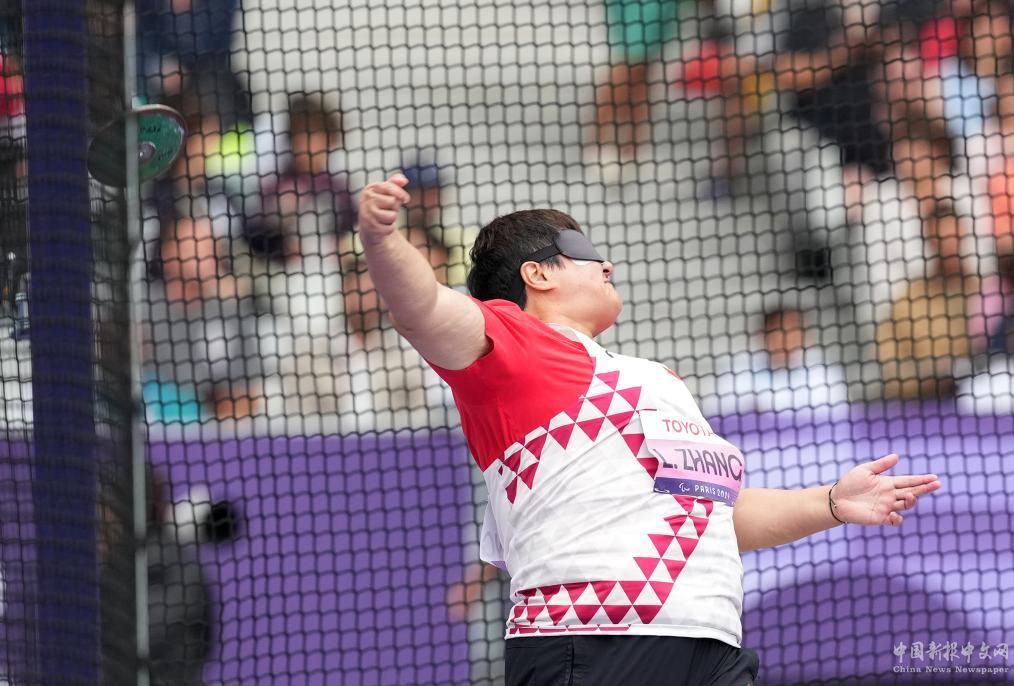 9月3日,張亮敏在比賽中試投。當(dāng)日,在巴黎殘奧會(huì)田徑女子鐵餅F11級(jí)決賽中,中國(guó)選手張亮敏以39米08的成績(jī)獲得金牌。新華社記者 賀燦鈴 攝