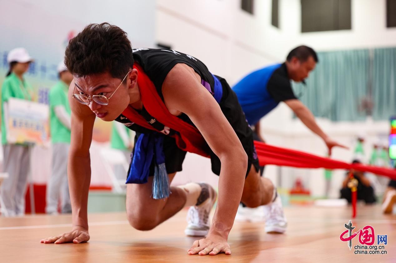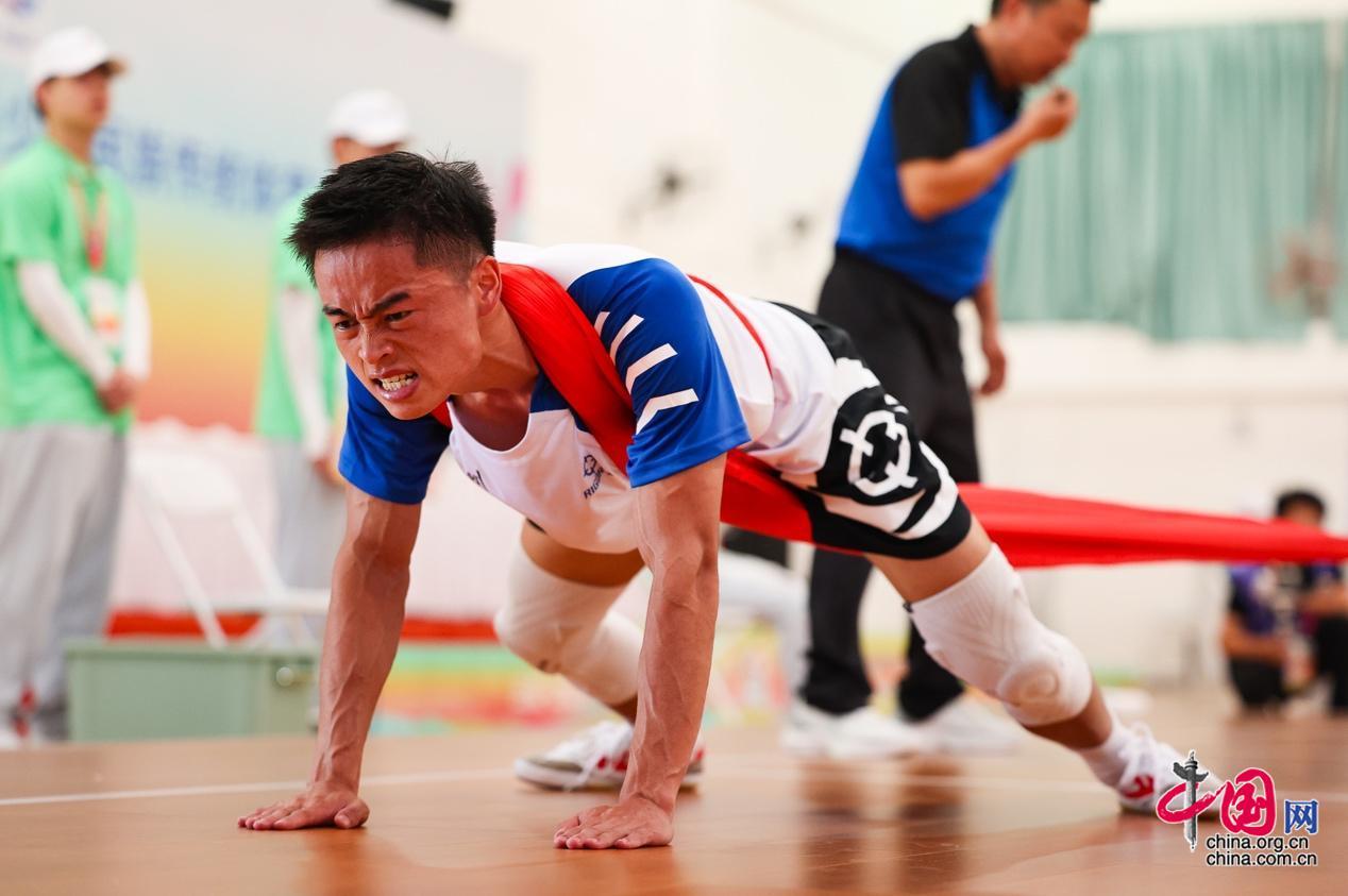 11月25日,第十二屆全國(guó)少數(shù)民族傳統(tǒng)體育運(yùn)動(dòng)會(huì)押加項(xiàng)目68公斤級(jí)比賽,圖為重慶代表團(tuán)選手王孝興在比賽中。中國(guó)網(wǎng)記者 董寧 攝影