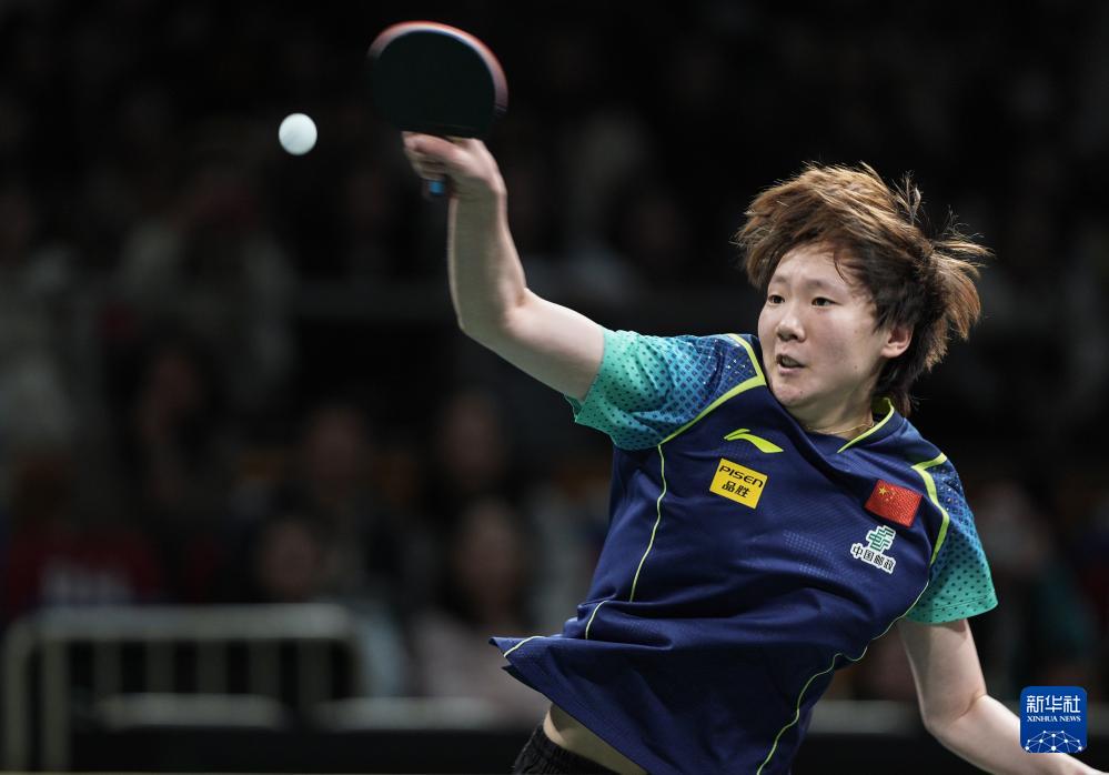 12月8日,中國隊選手王曼昱在女單比賽中回球。最終,她3比0勝羅馬尼亞隊選手阿迪娜·迪亞科努。