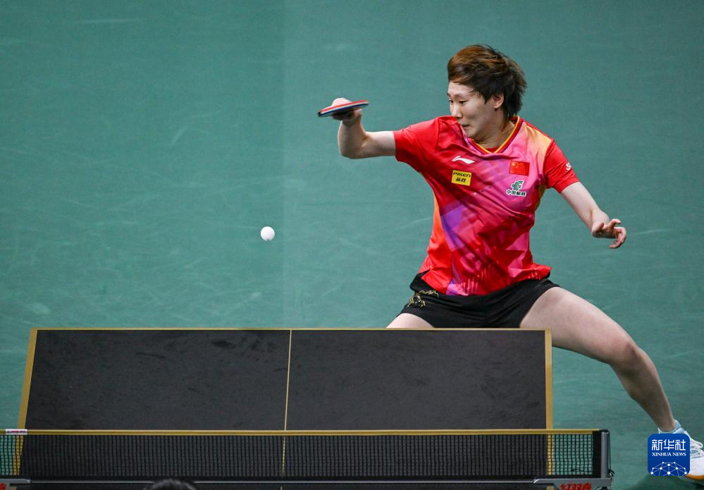 12月8日,中國隊(duì)選手王曼昱在女單比賽中。最終,她3比0戰(zhàn)勝韓國隊(duì)選手金娜英。