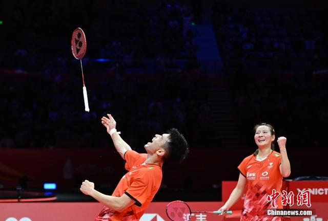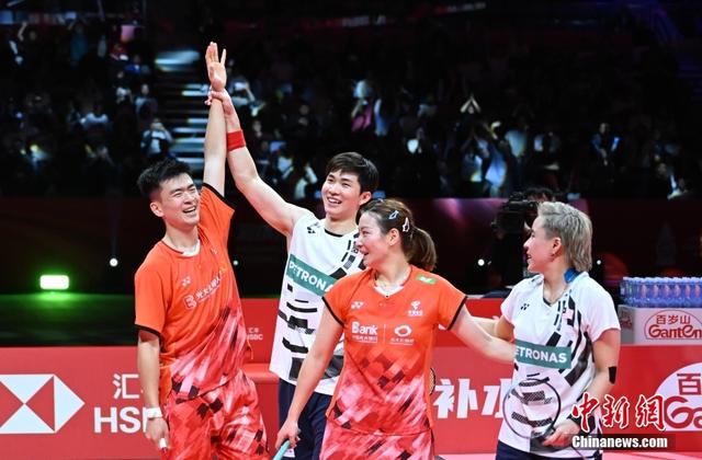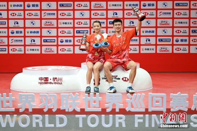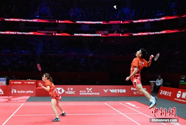 12月15日,2024世界羽聯(lián)世界巡回賽總決賽在浙江杭州舉行,中國組合鄭思維(左)/黃雅瓊(右)在混雙決賽中2比1戰(zhàn)勝馬來西亞組合陳堂杰/杜頤溈,奪得本項(xiàng)目冠軍。中新社記者 王剛 攝
