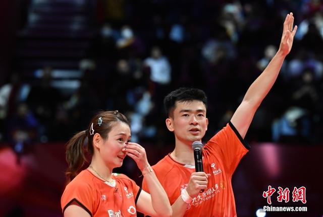 12月15日,2024世界羽聯(lián)世界巡回賽總決賽在浙江杭州舉行,中國組合鄭思維(右)/黃雅瓊(左)在混雙決賽中2比1戰(zhàn)勝馬來西亞組合陳堂杰/杜頤溈,奪得本項(xiàng)目冠軍。圖為鄭思維在賽后和觀眾一同喊出“雅思,永不落幕”。中新社記者 王剛 攝