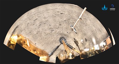 嫦娥五號(hào)探測(cè)器在月球表面展示國(guó)旗。 新華社發(fā)