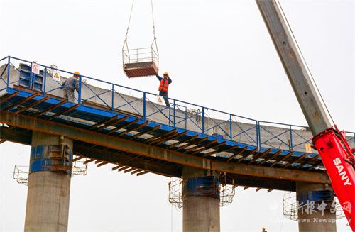1月5日,新寧縣金石鎮(zhèn)石安村田野中,新化縣至新寧縣新新高速公路二標(biāo)段縣城東互通轉(zhuǎn)盤高架橋墩上,大型吊車正在忙著吊卸混凝土蓋梁上的鋼筋模板。新年伊始,新新高速公路全線保持發(fā)揚(yáng)施工作業(yè)連續(xù)大干快上強(qiáng)勁勢(shì)頭,抓時(shí)間搶速度,確保過硬工程質(zhì)量,迎戰(zhàn)新年開門紅。(記者 彭林海  通訊員 鄭國(guó)華  鄧暄暄 攝影報(bào)道)