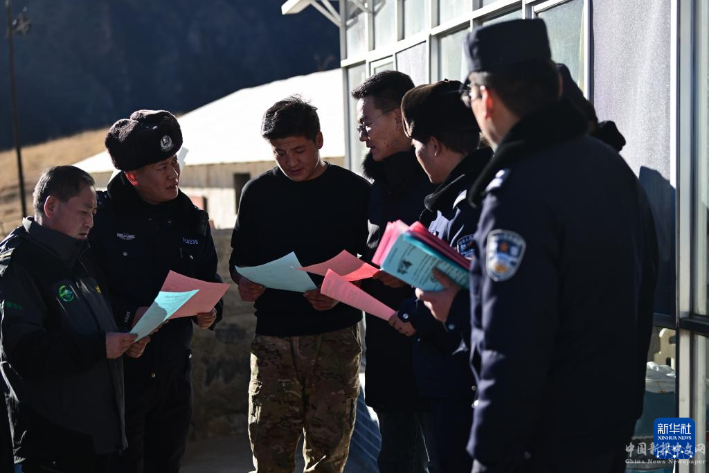 1月9日,大通回族土族自治縣公安局北川河源區(qū)國(guó)家級(jí)自然保護(hù)區(qū)生態(tài)警務(wù)室民警和輔警在牧民家中進(jìn)行生態(tài)環(huán)保宣傳。新華社記者 張龍 攝