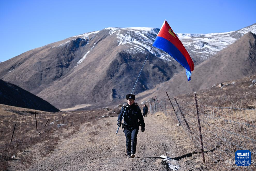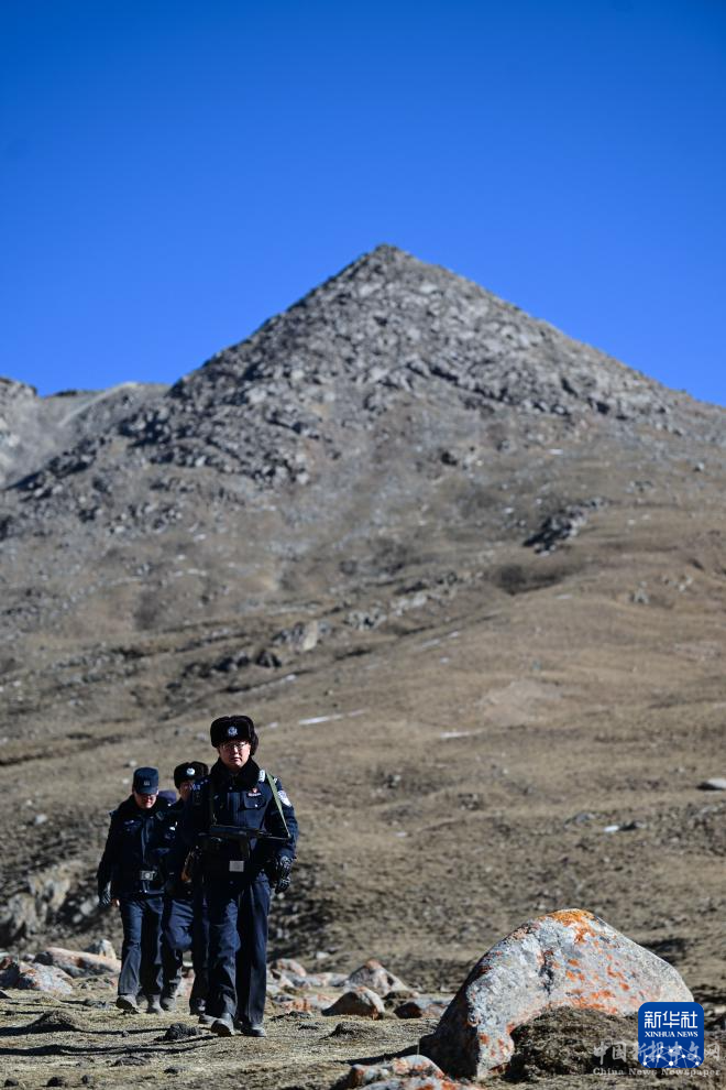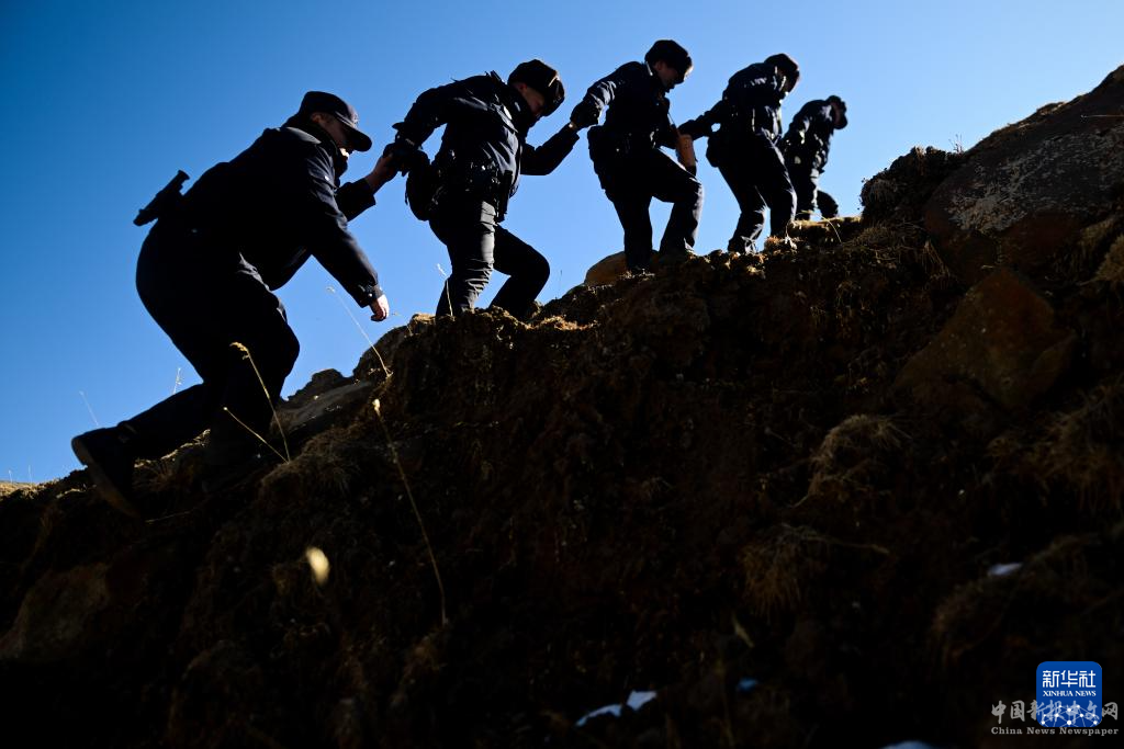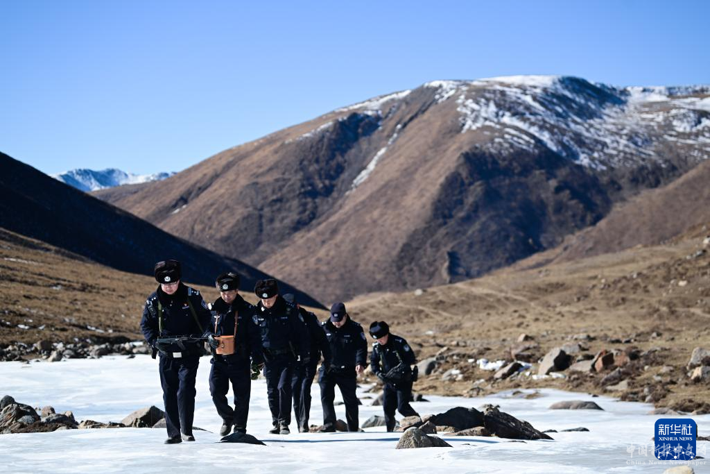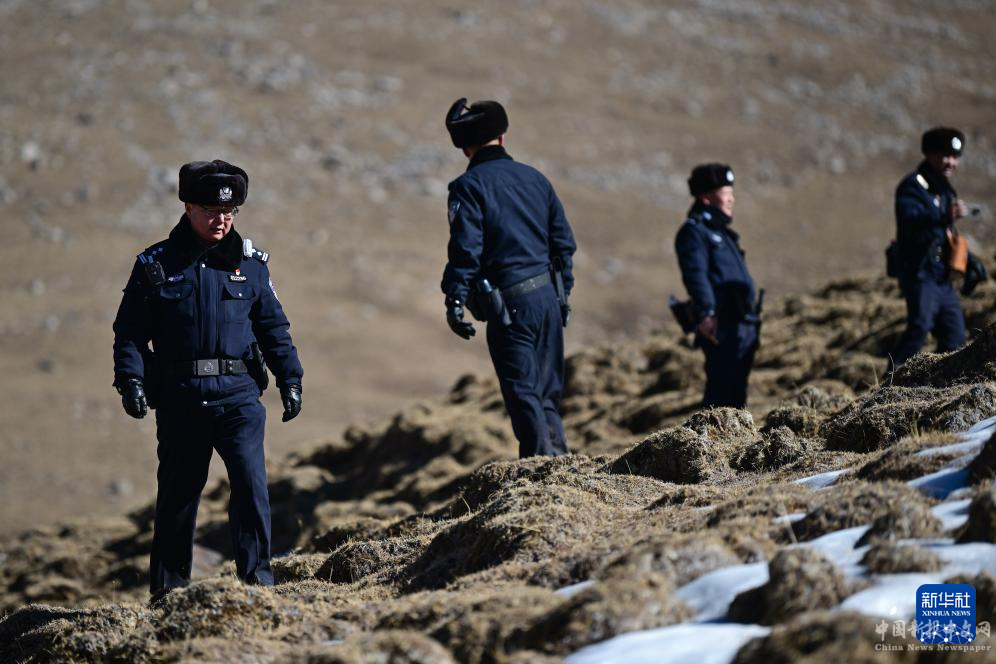 1月9日,大通回族土族自治縣公安局北川河源區(qū)國(guó)家級(jí)自然保護(hù)區(qū)生態(tài)警務(wù)室民警蘇黎(左一)在巡邏。新華社記者 張龍 攝