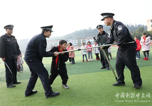 1月10日,在湖南省保靖縣清水坪學(xué)校,民警給學(xué)生講解警務(wù)知識及警用裝備的使用方法。連日來,該縣公安局組織民警深入中小學(xué)校,開展“110宣傳”進(jìn)校園活動,民警們通過知識宣講、警用裝備展示和戰(zhàn)術(shù)表演互動等形式,并指導(dǎo)學(xué)生模擬如何報警和防騙小知識,提高師生自我保護(hù)意識和能力。(俞采華 佘高衛(wèi))