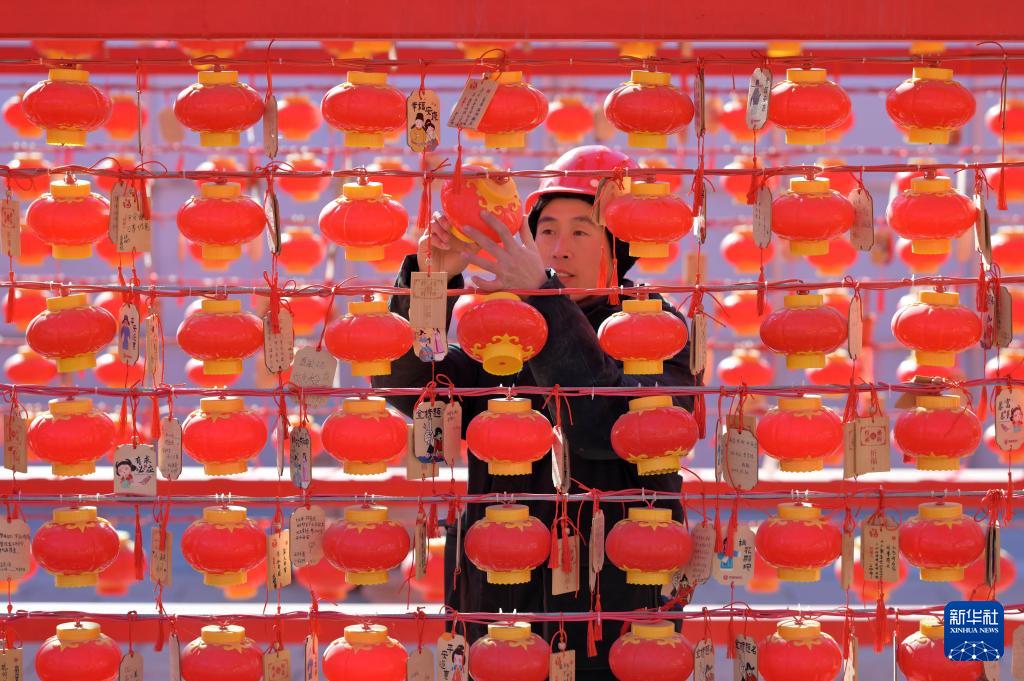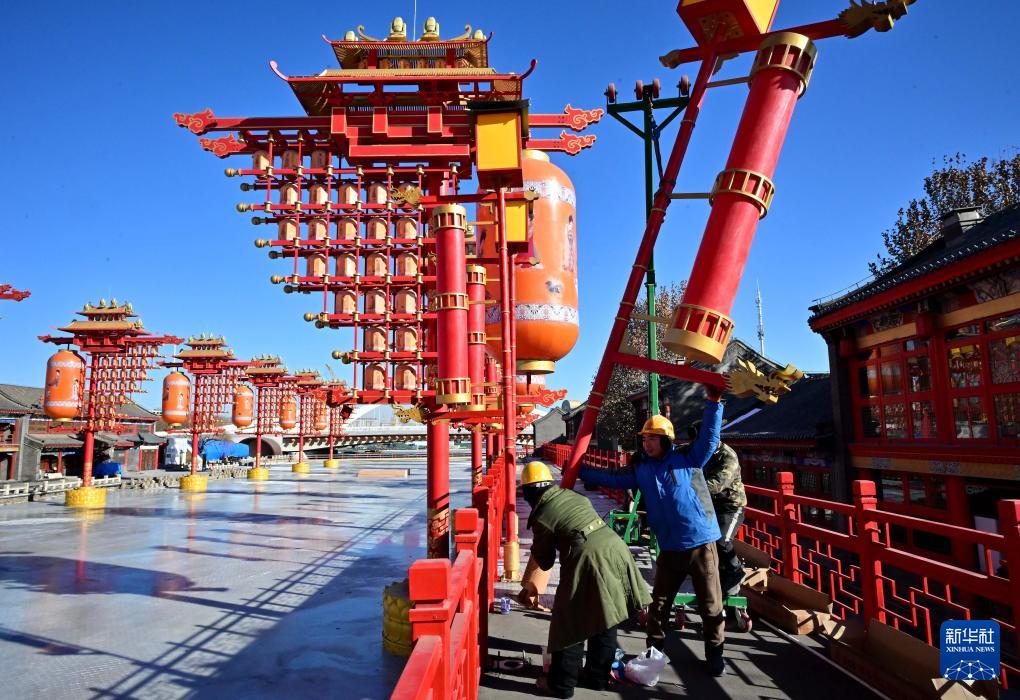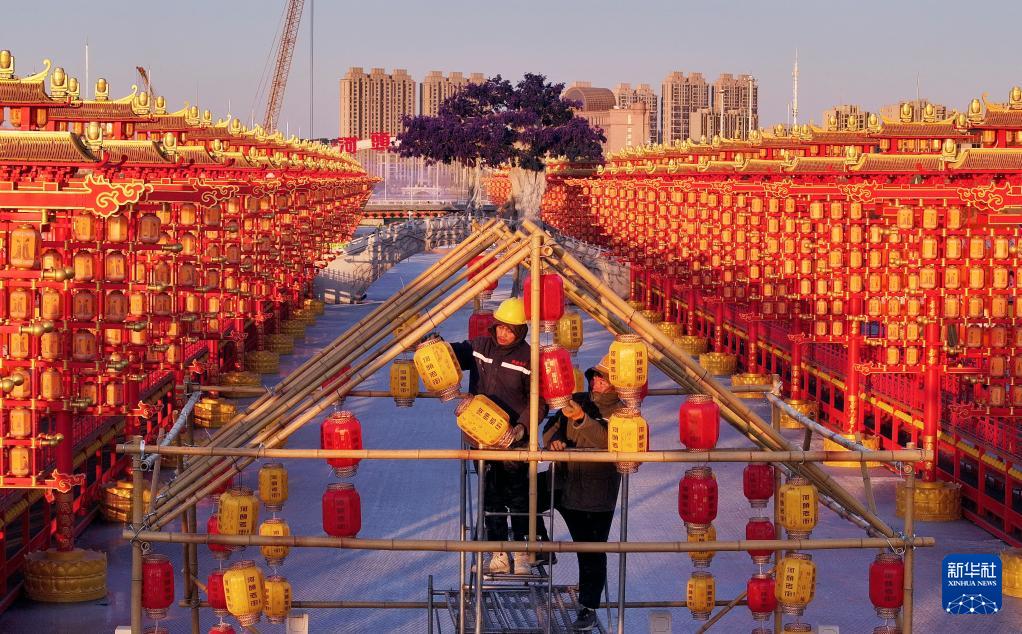 1月23日,工人在河北省唐山市豐南區(qū)河頭老街景區(qū)安裝節(jié)慶亮化設(shè)施。