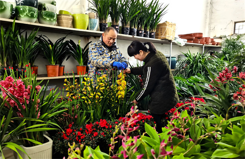 2024年1月26日,在安徽省合肥市廬江縣花鳥蟲魚市場,市民在鮮花基地選購鮮花。