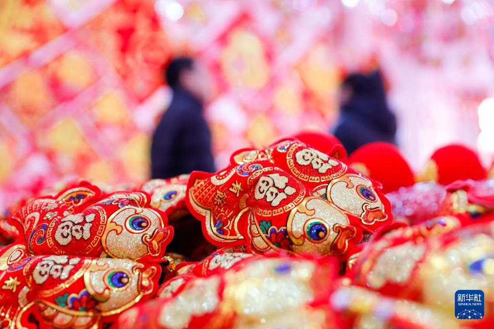 1月28日,市民在湖北省武漢市漢口北國際貿(mào)易城挑選春節(jié)飾品。