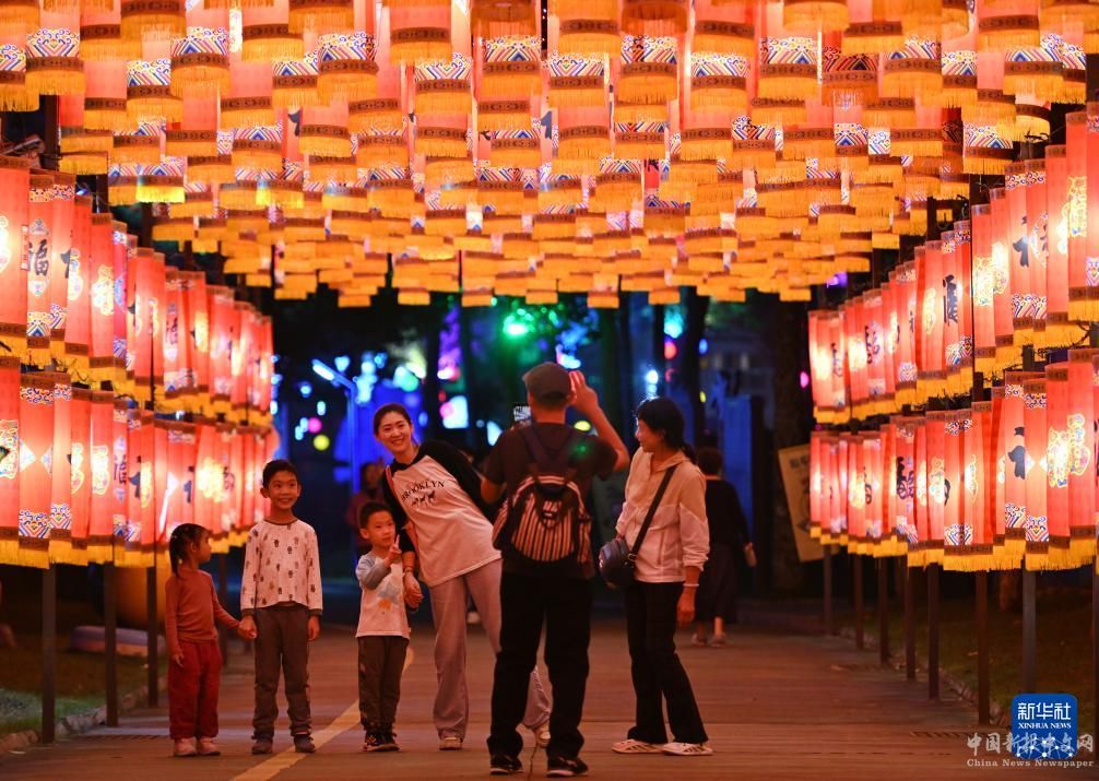 1月30日,游客在文昌椰子大觀園景區(qū)觀看新年燈會(huì)。