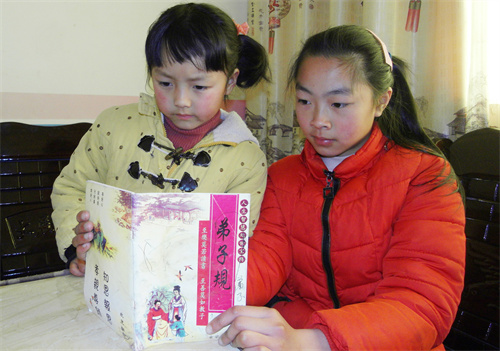 2月6日,隆回縣金石橋鎮(zhèn)中心小學兩名小學生在閱讀古代少兒讀物《弟子規(guī)》。今年寒假,該校開展“好書伴我過春節(jié)”活動,引導孩子過一個愉快又有收獲的新春。(陳甫春 攝影報道)