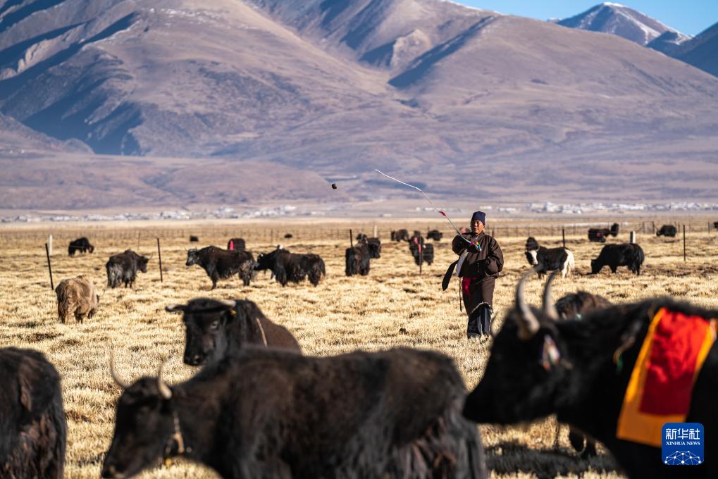 2月10日,斯曲旺姆的兒子索朗羅達將牦牛趕到牧場上。