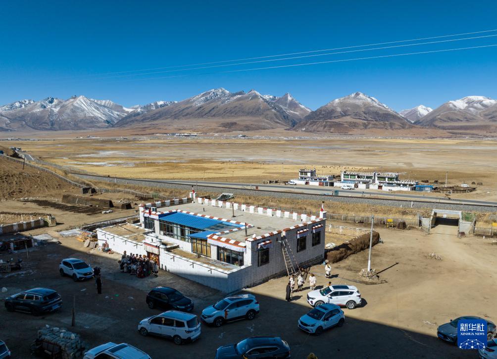 這是斯曲旺姆在西藏拉薩市當(dāng)雄縣公塘鄉(xiāng)甲根村的家(2月10日攝,無人機照片)。