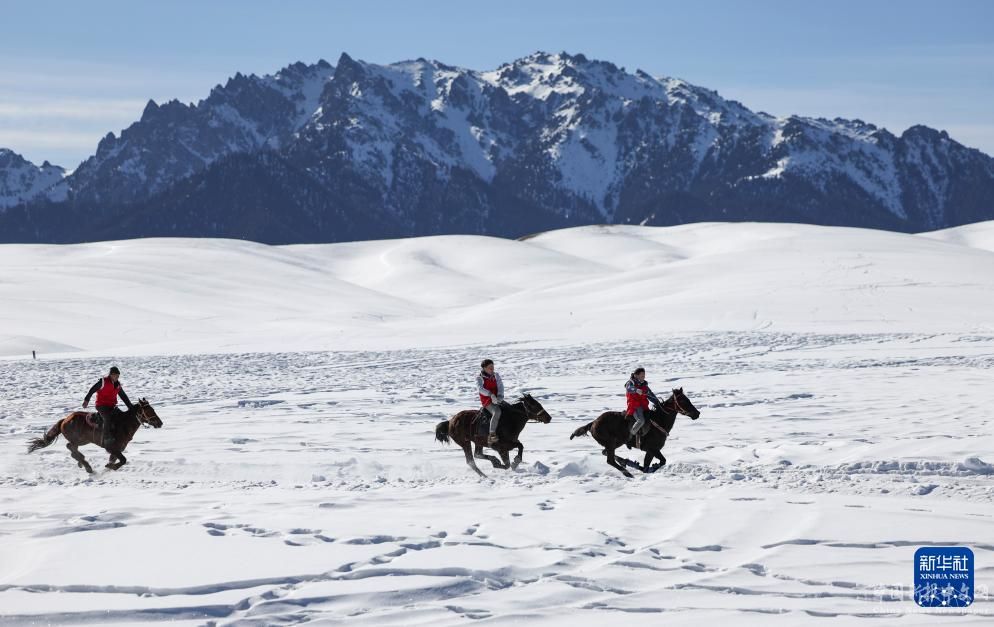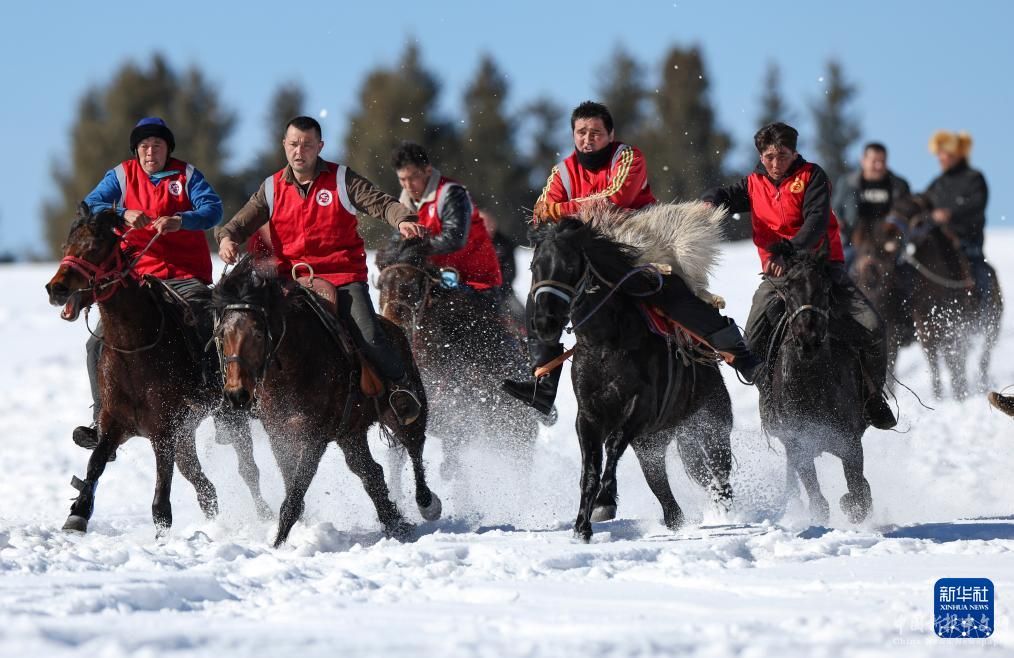 農(nóng)歷大年初二,新疆烏魯木齊縣“春節(jié)八天樂”系列活動——傳統(tǒng)體育民俗鬧新春在甘溝鄉(xiāng)進(jìn)行。村民們在冰雪覆蓋的烏拉斯臺草原上進(jìn)行雪地賽馬、“姑娘追”、馬上拾銀、叼羊等比賽,歡度新春。