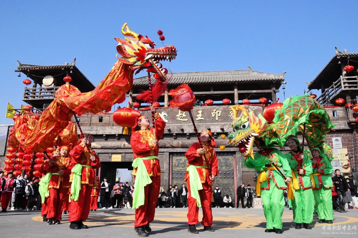 2月12日,在河北省邯鄲市廣平縣趙王印象城景區(qū),游客觀賞舞龍。程學(xué)虎 攝