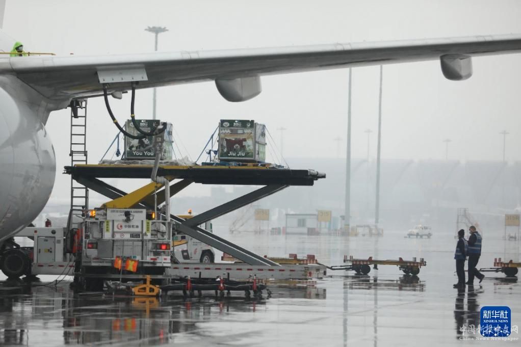3月1日,大熊貓“冰星”“花嘴巴”及其3只幼崽“竹莉娜”“久久”“友友”平安抵達成都雙流國際機場。新華社發(fā)(成都大熊貓繁育研究基地供圖)