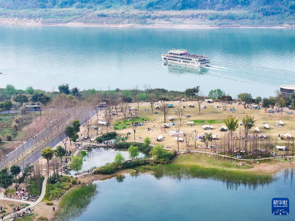 3月16日,游客在重慶廣陽島游覽、休閑(無人機照片)。新華社記者 王全超 攝