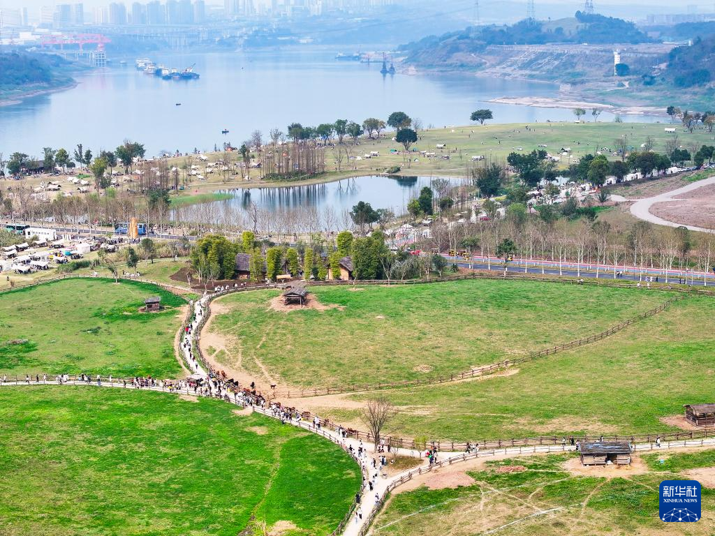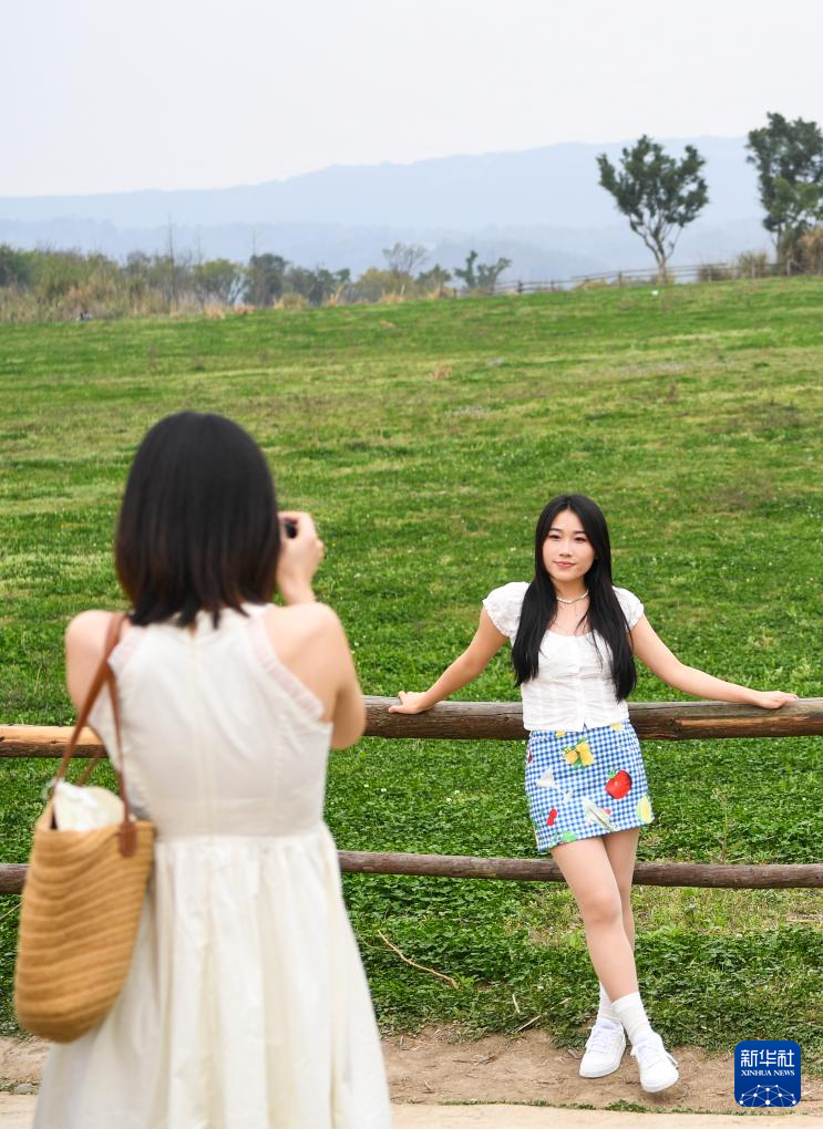 3月16日,游客在重慶廣陽島勝利草場游覽、拍照。新華社記者 王全超 攝