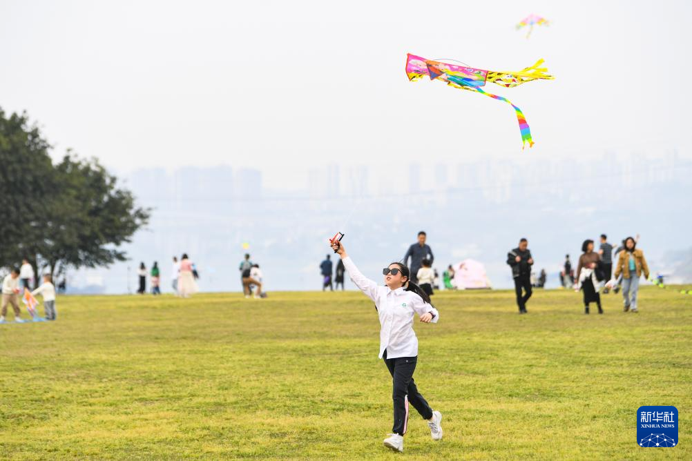 3月16日,小朋友在重慶廣陽島東島頭放風(fēng)箏。新華社記者 王全超 攝