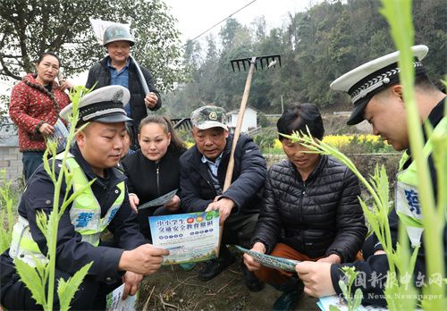 3月22日,民警在湖南省保靖縣清水坪鎮(zhèn)黃連村的田間給村民講解交通安全知識。時下正是春耕季節(jié),該縣公安局清水坪交警中隊交通安全宣傳小分隊,深入田間地頭開展交通安全宣傳活動,為正在春耕的群眾送去“交通安全”的種子,為春耕生產(chǎn)創(chuàng)造安全有序的道路交通環(huán)境。(俞采華 胡 勝)