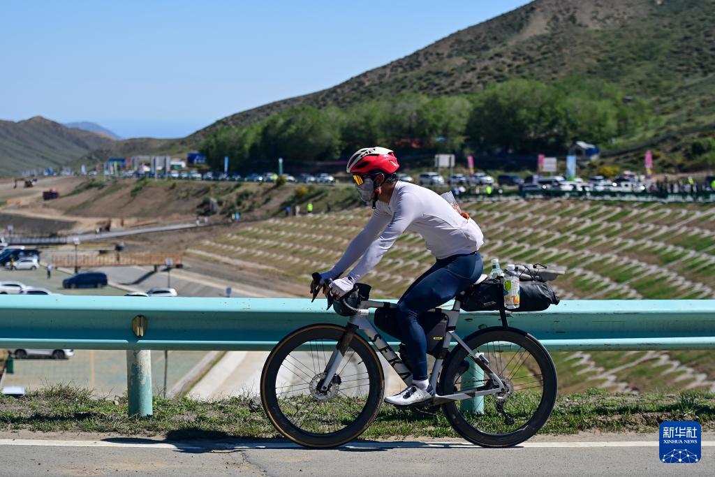 6月1日,在新疆塔城地區(qū)烏蘇市獨(dú)庫(kù)公路驛站,一名騎友騎車前往獨(dú)庫(kù)公路。