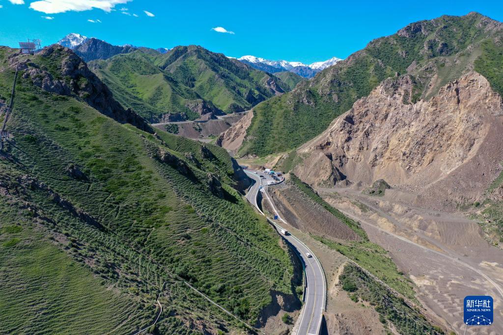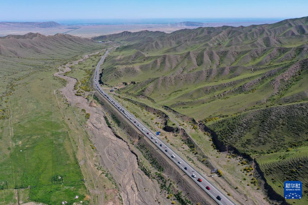 車輛行駛在新疆獨(dú)庫(kù)公路上(2021年6月20日攝,無(wú)人機(jī)照片)。