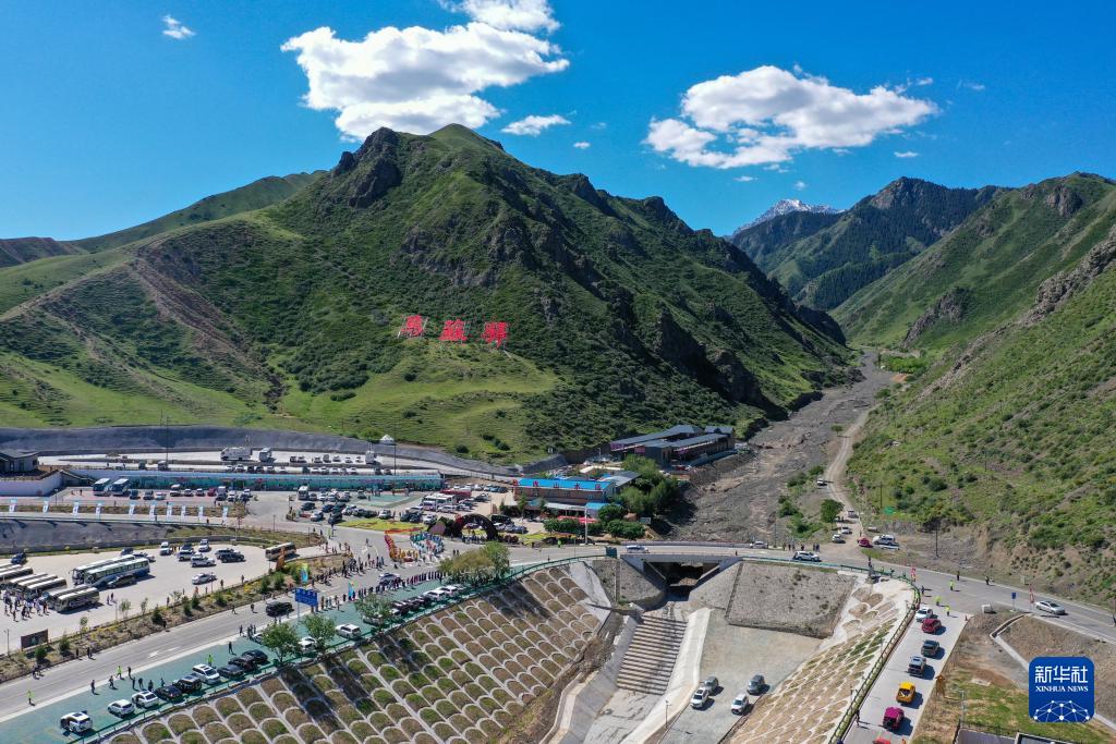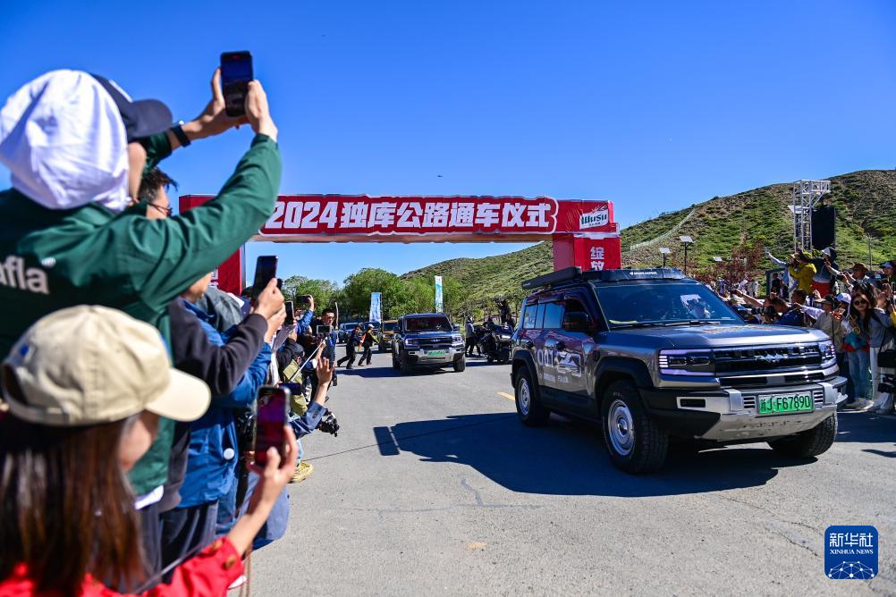 這是6月1日在新疆塔城地區(qū)烏蘇市獨(dú)庫(kù)公路驛站拍攝的通車儀式現(xiàn)場(chǎng)。
