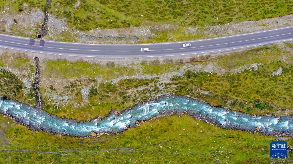 這是獨(dú)庫(kù)公路沿途海拔3390米的哈希勒根達(dá)坂風(fēng)景(2023年8月23日攝,無(wú)人機(jī)照片)。
